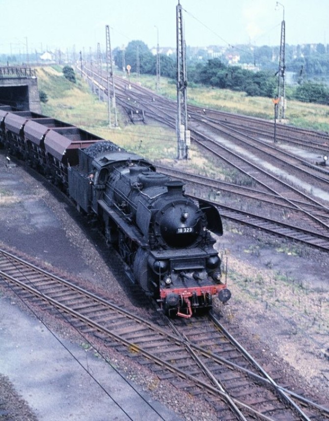 Bild oben: Die 18 323 präsentiert sich im September 1969 während einer Abschiedsfahrt am Düsseldorfer Hauptbahnhof. Copyright: Manfred Mülhens / Slg. Eisenbahnstiftung